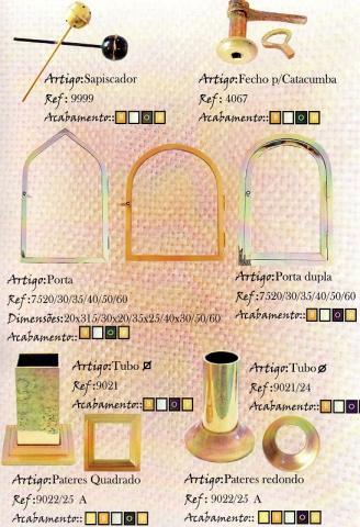 Issópes ( Sapiscador),fecho para catacumba ou fecho para tampo da campa ( Sepultura) ou Jazigo,portas e portas duplas, tubos redondos e quadrados assim com pateres redondos e quadrados varios tamanhos.