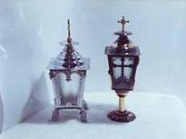 Lanterna para cemitério designado tambem por lampioes em chapa de ferro de quatro lados e cinco lados