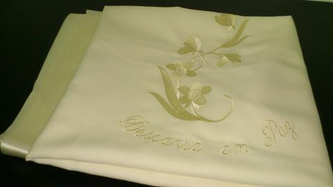 Lençol minimate bordado com Flor com renda ou fita em branco, pérola (Creme )